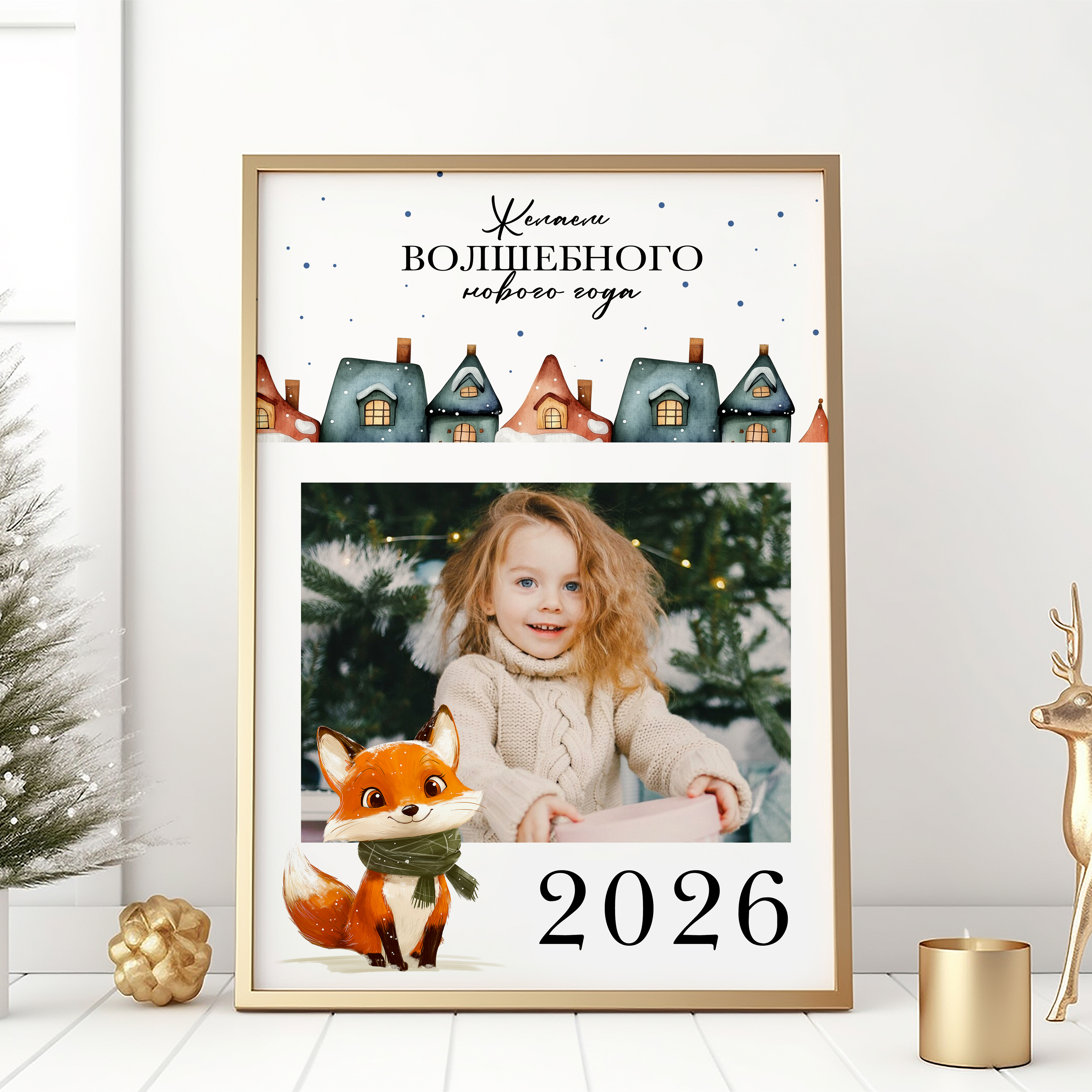 Новогодний календарь и коллаж "Лисёнок" на 2026 год